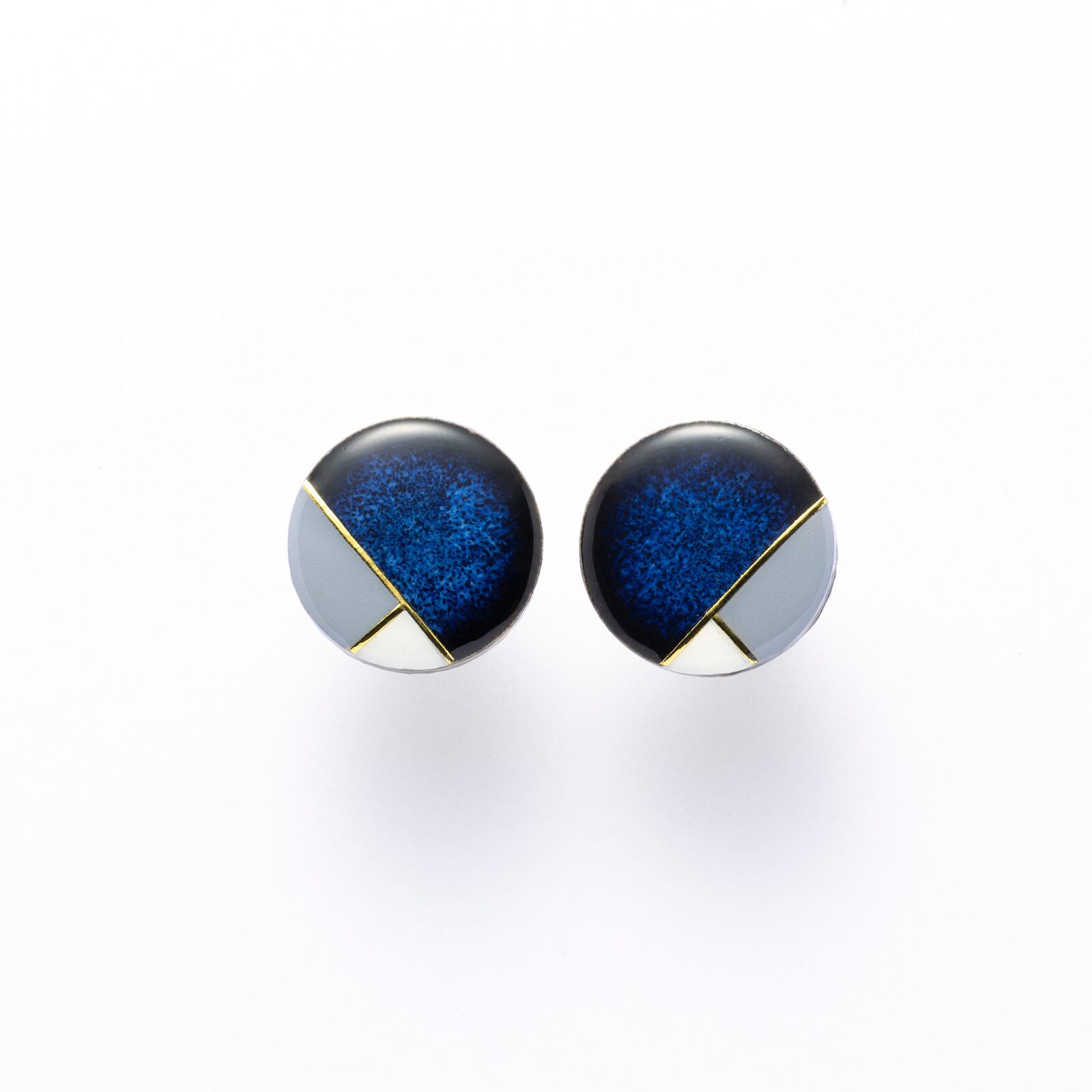 美濃焼陶器 レクタングルモダン ピアス / イヤリング|藍(あい)