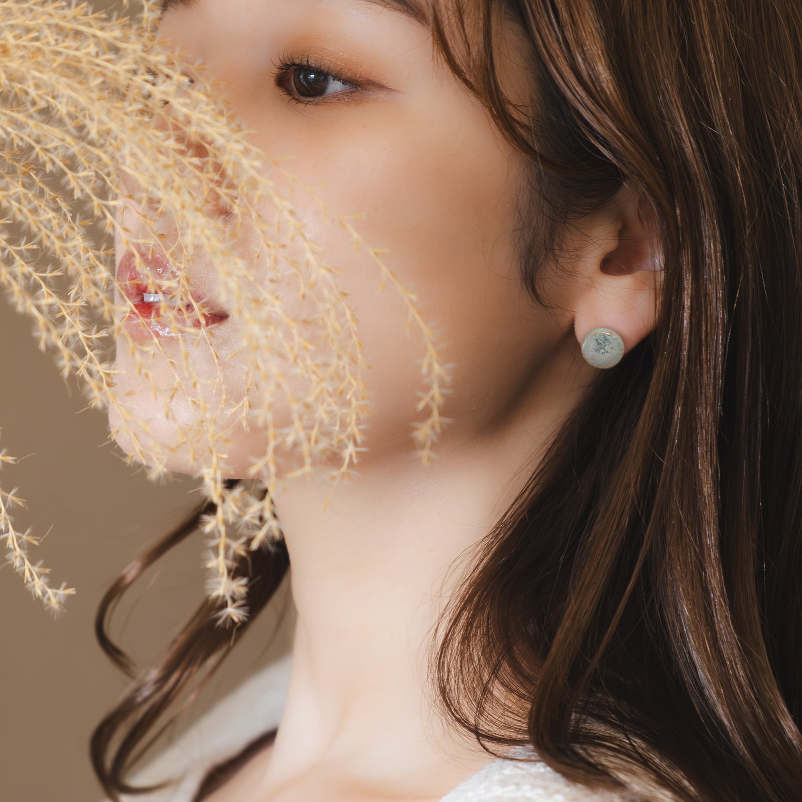MIKELOオリジナル 陶器「tou」cirlce ピアス / イヤリング|白緑