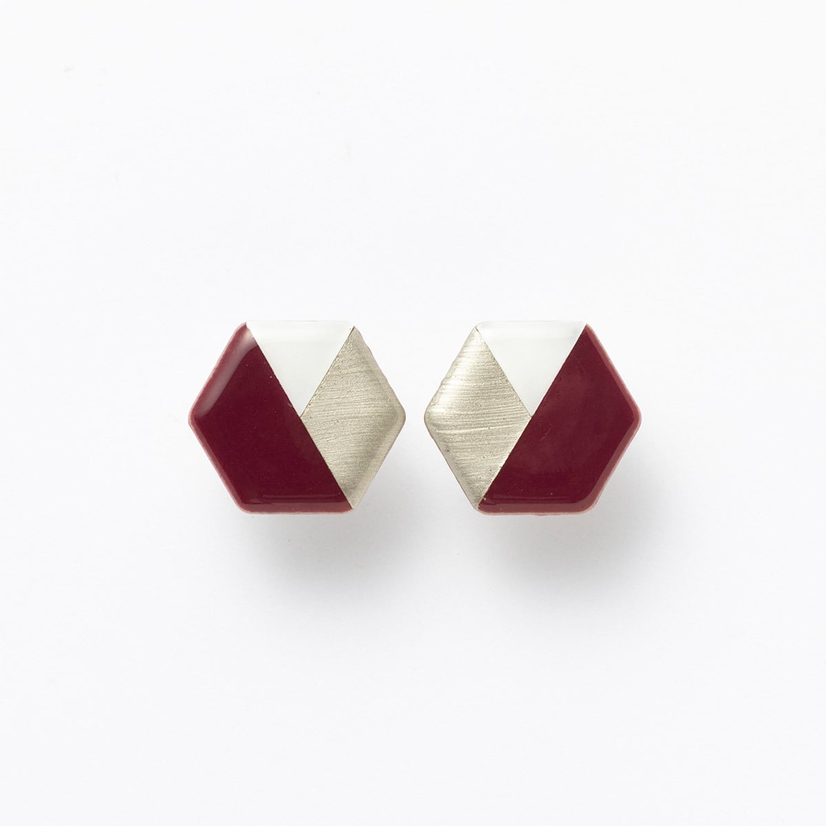 美濃焼陶器のピアス&イヤリング。バーガンディカラーに、ゴールド×ホワイトのさわやかで上品なカラーリング。普段のお出かけにはもちろん、パーティーシーンにもおすすめです。